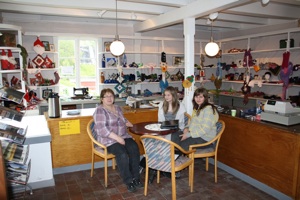 De glade vertene er klare for å ta i mot turister og husflidsinteresserte gjester i butikken ved Hamnvik Handelssted. Lukta av nystekte vafler og kaffe slår i mot oss når vi kommer inn døra. Det jobbes med å kartlegge tilbud for å yte best mulig service gjennom sommeren. Utvalget av husflidsprodukter er allsidig og fargerikt. Vel verdt et besøk!!!!